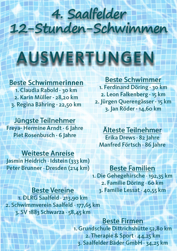 Auswertungen 4. Saalfelder 12 Stunden-Schwimmen 2026
